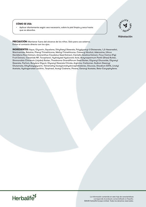 Tiene una textura ligera y no grasa que deja la piel suave y aterciopelada.